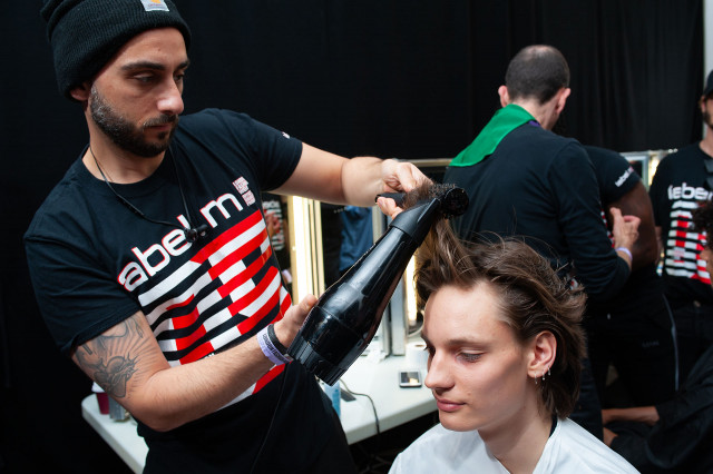 Backstage at London Fashion Week Men’s with TONI&GUY Artistic Director Danielle de Angelis, creating the looks for the Spring/Summer 20 8on8 show using our award-winning in-house professional haircare range label.m
