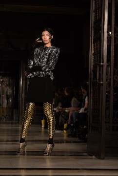 Run your hands through front section using label.m Texturising Volume Spray and cross over the hair under the ponytail and create a knot that sits on top.