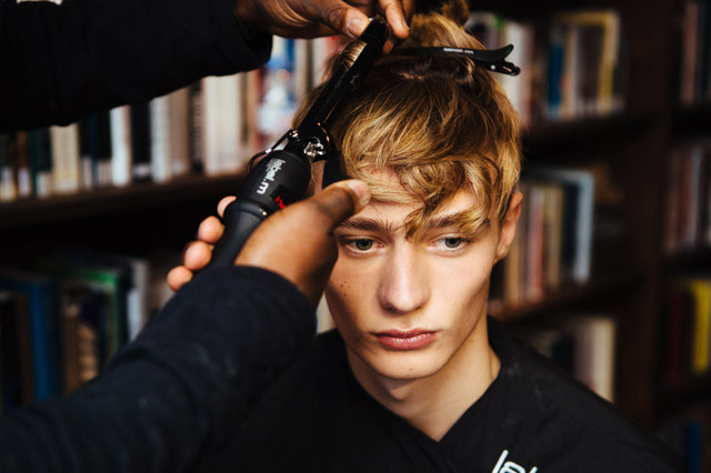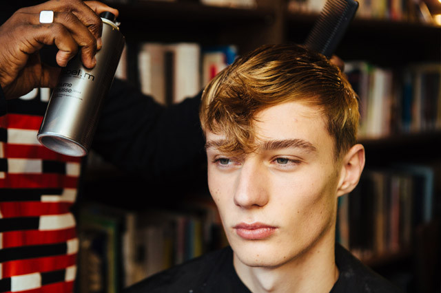 Prep with label.m Volume Mousse to the top section and label.m Sea Salt Spray to the lower section of the head.