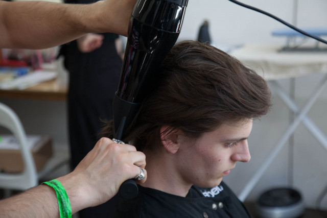 Taking its cue from the old-school sportswear influence, the hair remained minimal but gave off the appearance of being sweaty, resembling a gentleman in the gym. Daniele and the session team, worked with the models’ natural curls and length to create a diverse range of looks.