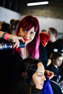 Following Di Petsa’s exploration into godess muses, the hair created by International Artistic Director, Efi Davies and the TONI&GUY Session Team oozed femininity. The hair had an ethereal nature, the roots were flat to the head using LABEL.M Fashion Edition Gel to givea wet look feel, while the ends were loose adding an undone texture to the final style.