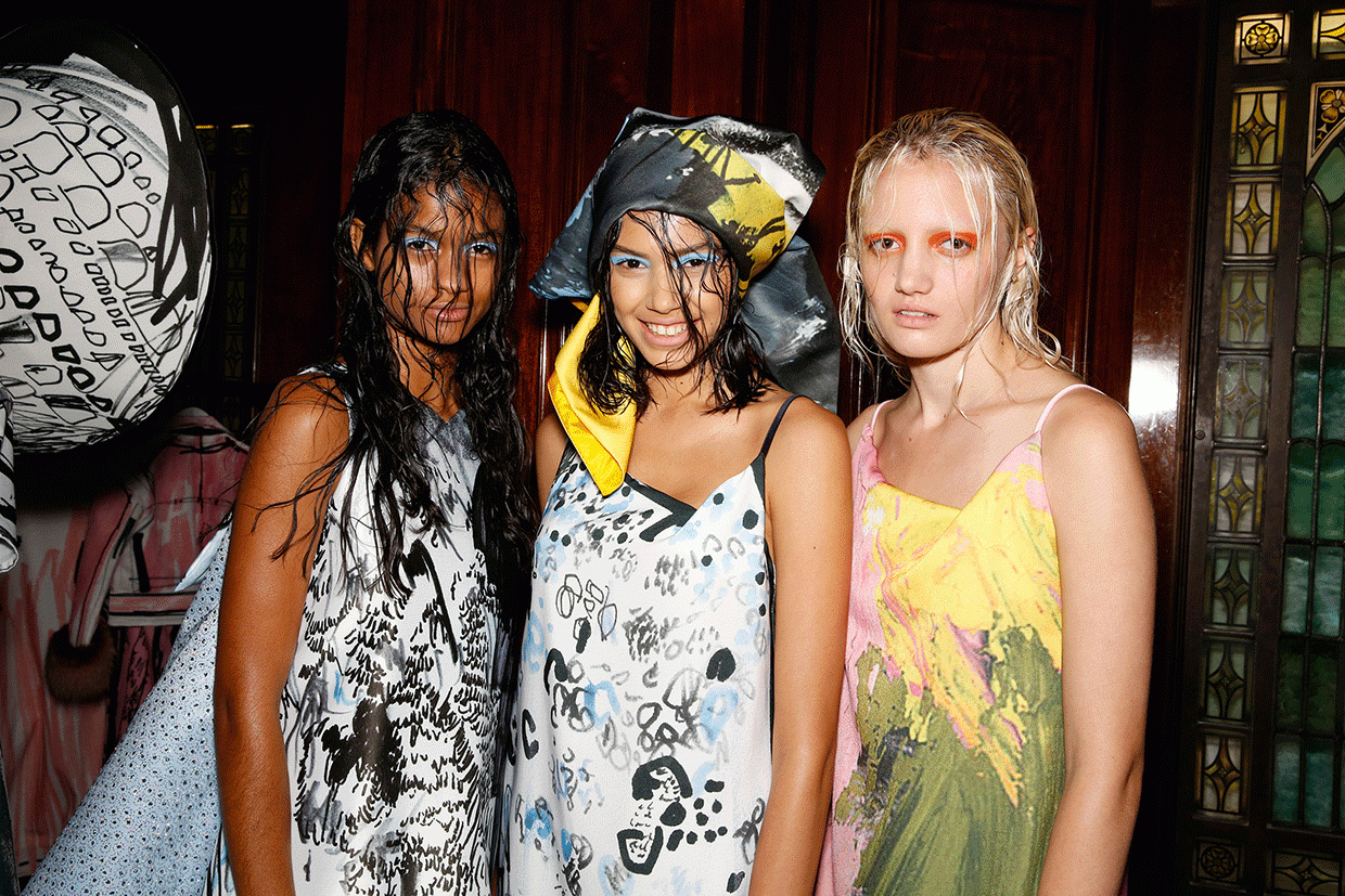 AW16’s Ones To Watch winner Edda graduated from London College of Fashion and has been named by the New York Times as one of ten “fresh out of fashion school designers to watch,” designer Edda describes herself as “fascinated by textiles.”. The Norwegian designer combines various elements to her collection from heavily embellished pink knitwear to bold black and white hand-drawn prints with an element of fur.