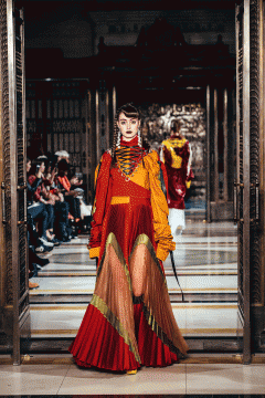 Han Wen’s collection was inspired by the 1890’s gang culture, where girls began to wear men’s clothing. Oversized suits ruled the runway representing strength through masculine silhouettes.