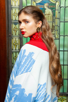 In contrast to the dry texture of the waves – liberally spritz the top only with label.m Hold & Gloss for a distinct high shine appearance. Set with Hairspray.