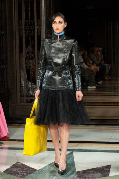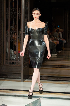 Contrasting opulence and power with a strong ponytail and glamourous finger wave
