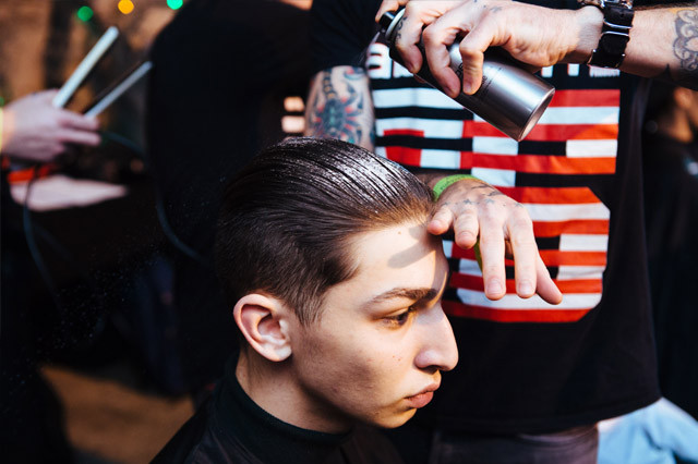 Join us backstage and front-row at London Fashion Week Men’s for Paria Farzaneh AW19, where International Artistic Director Luke Harris draws inspiration from American Psycho, to create an iconic slicked back look at Paria Farzaneh AW19.