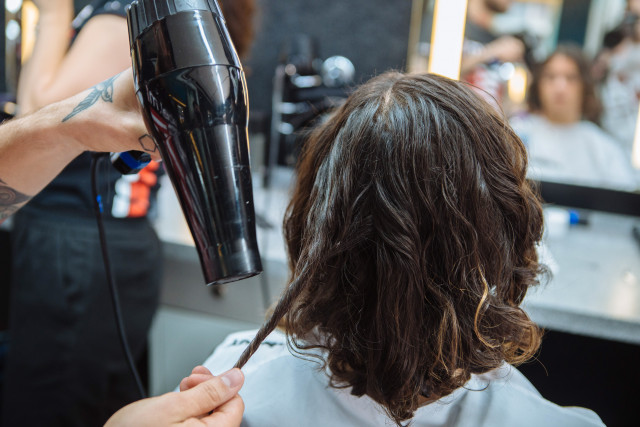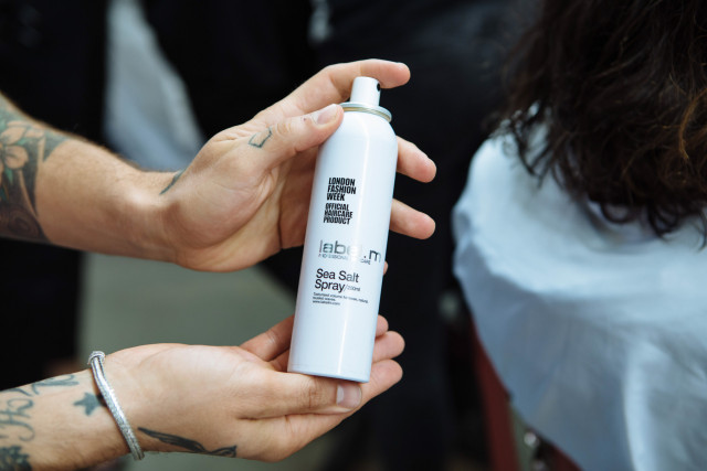 Apply a second layer of label.m Sea Salt spray to dry hair and blast in with a hairdryer.
