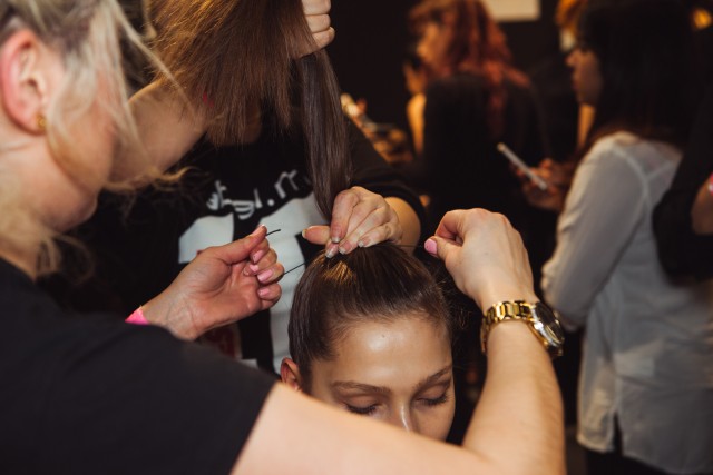 Spray with a label.m Texturising Volume spray and attach clips to small portions of the hair around the head. Leave in for a few minutes to make sure there is lots of texture around the head.