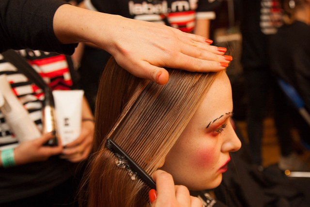 Remove the label.m Metal Sectioning Clips and fix bun in place with label.m Hold and Gloss Spray