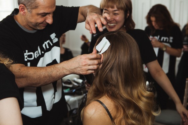 Spray the side of hair with label.m hairspray, and using your hands, push back while drying with a label.m Tourmaline Dryer on a mid-heat to style set in place. Maintain texture by drying through the fingers.