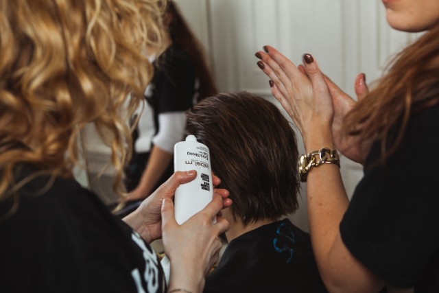 Use hair spray on the sides and blow dry using a label.m grooming brush to set the style. Use a label.m clip with a folded tissue to help keep the style in place. Once hair has cooled and set, remove the clips and tissue.