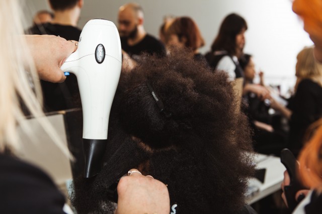 Prep the hair with label.m Volume Mousse, and dry using a label.m Styling Brush.