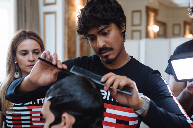 Backstage at London Fashion Week Men’s with TONI&GUY Artistic Director Louis Maharaj at Kimpton Fitzroy London, creating the looks for the Spring/Summer 20 Velsvoir show using our award-winning in-house professional haircare range label.m.