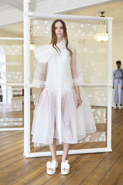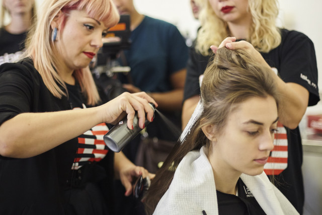Following on from Xiao’s collection theme, Efi and the Session Team have created YOU ARE A FASHION ROBOT hair, which is structured with sharp, defined partings on all the models.