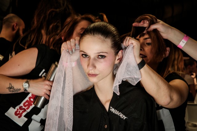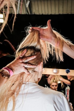 Prep hair with label.m Volume Foam and with label.m Volume Mousse through the top and sides. Comb through and smooth through to the ends of the hair, making sure the sides slicked down.