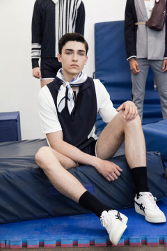 Taking its cue from the old-school sportswear influence, the hair remained minimal but gave off the appearance of being sweaty, resembling a gentleman in the gym. Daniele and the session team, worked with the models’ natural curls and length to create a diverse range of looks.