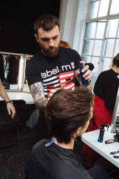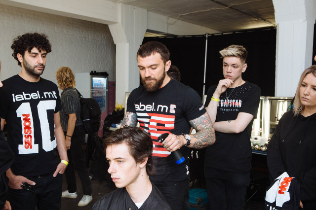 Backstage at London Fashion Week Men’s with TONI&GUY Artistic Director Luke Harris at The Old Truman Brewery, creating the looks for the Spring/Summer 20 E. Tautz show using our award-winning in-house professional haircare range label.m.