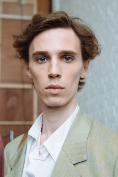 Continuing the designer’s inspiration, hair resembles the signature styles seen on George Michael and Barry Manilow during the 1980s.