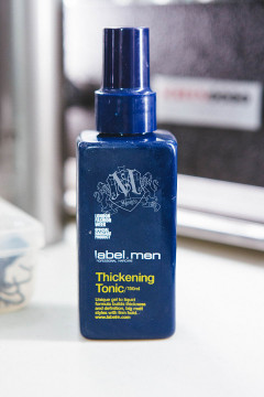 When prepping the hair with label.men Thickening Tonic, spray at arms-length to prevent the hair from getting too sticky.