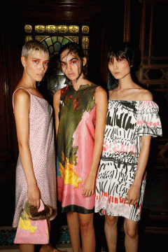 Inspired by an ethereal look reminiscent of childhood fairy tales, Sophie Springett complements the larger than life prints and silhouettes of Edda SS17. Bright colours contrasting with black and white set the tone of the collection, with oversized accessories and full skirts amplifying the colour palette.