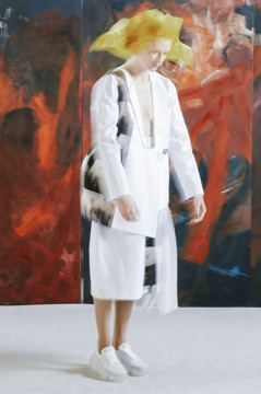 “The Girl Who Collected Memories” is a story of an imaginary character Rei. Amidst a Global Pandemic, as many of us, Rei feels insecure and out of control, like a leaf taken by the wild stream. To confront this feeling, she collects family photos of the people she never met and wears them as her clothes. Bringing her the feeling of belonging to the extended Global Family, these photos become her “armour”, protecting and empowering her. IA LONDON’S SS 2021 emerges from the context of a Global Pandemic. Proposing her point of view, designer Ira Iceberg symbolically uses light backgrounds, to oppose the darks, and silver-coated textiles as a base for the photographic prints, to emphasise their symbolic “armour” meaning. Iceberg also continues exploring the relationship between the body, form and image.