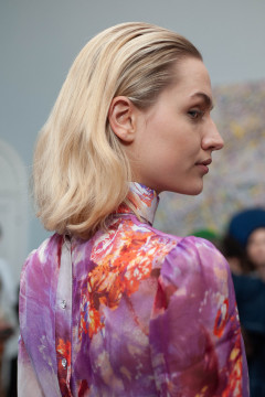 Backstage at London Fashion Week with TONI&GUY Artistic Director Sophie Springett where she created the looks for Autumn/Winter 2020 at Jiri Kalfar using the award-winning professional haircare range label.m