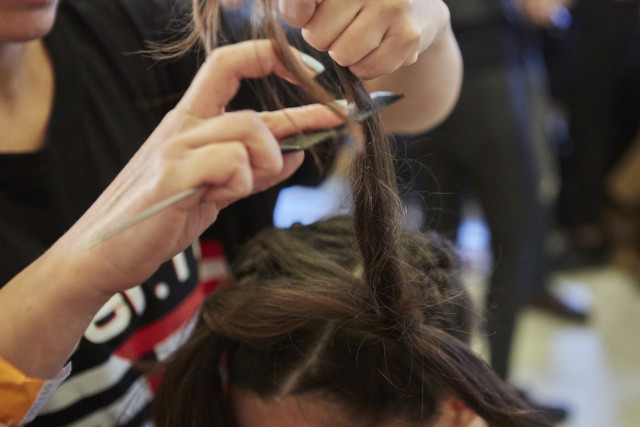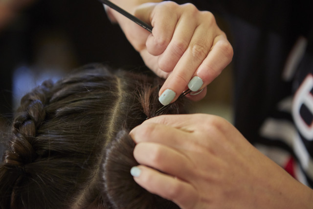 Apply label.m Volume Mousse before taking an off centre parting. To keep the parting clean and help braiding easier, apply label.m Texture Wax Stick