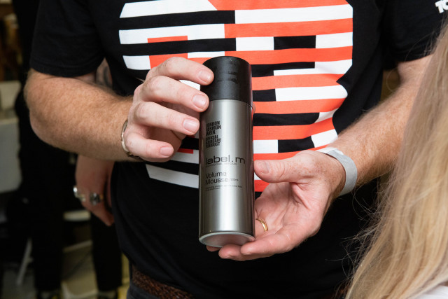 Prep hair with label.m Volume Mousse to form grip and volume control