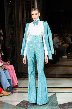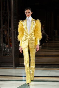Contrasting opulence and power with a strong ponytail and glamourous finger wave