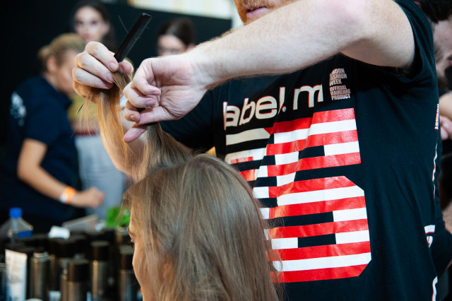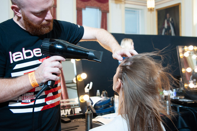 Apply label.m Volume Mousse to the hairline and surface and blast away from the face