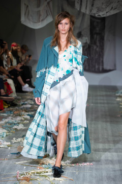Now in its third season, Wen Pan fuses the spirit of oriental recluses with romantic grunge aesthetics. By using raw fluidity and layers of textures, Wen Pan evokes characters in a balance of subtlety and freedom for SS20 the brand explores the beauty of brokenness, traces of human presence. Chinese ancient recluses and the 1990 grunge. This is seen through contrasting floral prints and textures, mixing fragile linen layers and sheer silk fabrics with rough cotton drapery and asymmetric cutting.