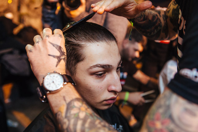 Using the label.m Wide Tooth comb through the front hairline, follow the shape of the head to create definition.