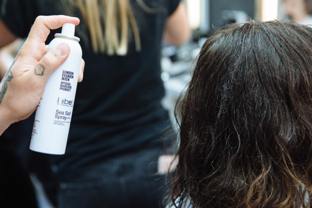 Apply a second layer of label.m Sea Salt spray to dry hair and blast in with a hairdryer.