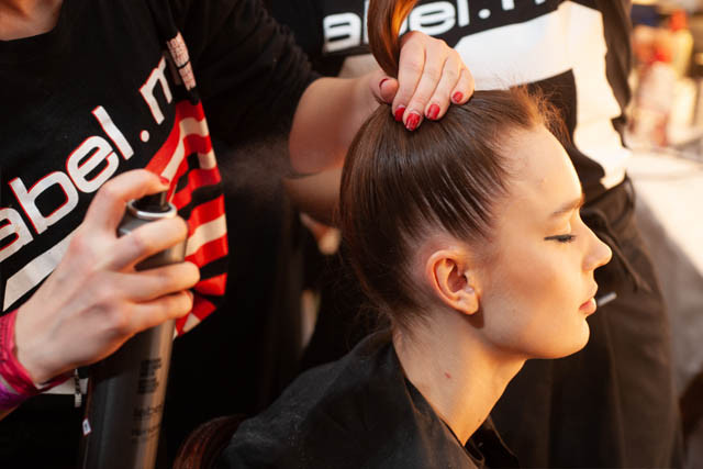 Join us backstage and front-row at London Fashion Week for Paul Costelloe AW19, where Head of Team Indira Schauwecker creates utilitarian twisted buns.