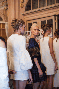 Bold and monochromatic colours with sharp silhouettes came together to create a warrior inspired collection. Collaborating high and securely fastened ponytails, and on-trend intricate braiding, the catwalk saw the fusion of the two looks to amplify the fierce collection.