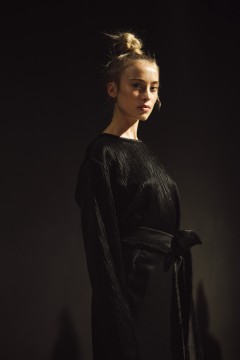Use a label.m Grooming Brush to keep hair together and then with your fingers, texturise the hair so it does not sit too straight. Secure with an elastic tie.