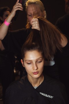 Spray with a label.m Texturising Volume spray and attach clips to small portions of the hair around the head. Leave in for a few minutes to make sure there is lots of texture around the head.