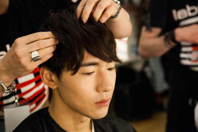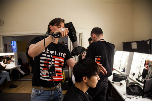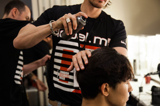 As this show involved many designers from Jermyn Street, working with each model’s natural texture was key. If hair was straight products such as label.men Deconstructor to separate and exaggerate was used, if hair was curly it was more about softening it up with label.m Leave-In Conditioner and then adding a matt effect with label.m Matt Paste