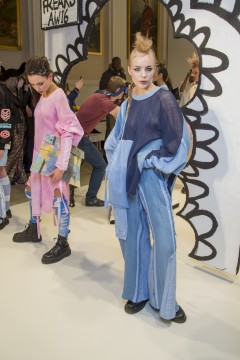comic book mixed with military influences. Pastels mixed with bright hand painted fabrics.
