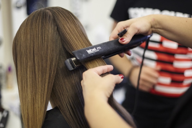 Straighten the back of hair using label.m Professional Titanium Pro-50 Styling Iron