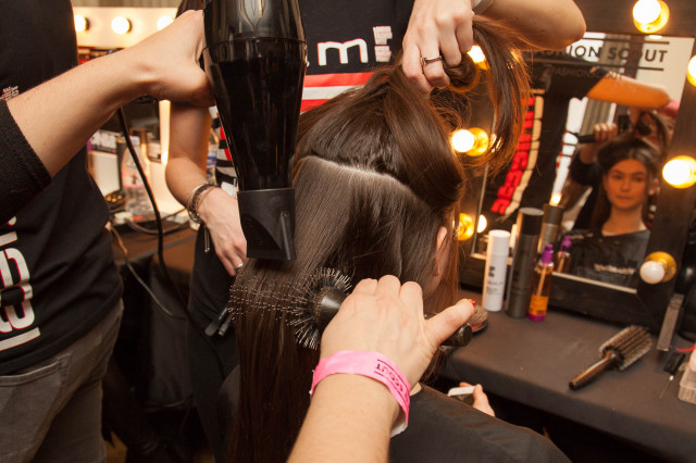 Gently place a hair net over the head. Spritz label.m Hairspray then blast with label.m Tourmaline Dryer on a medium heat to eliminate frizz and fly-aways