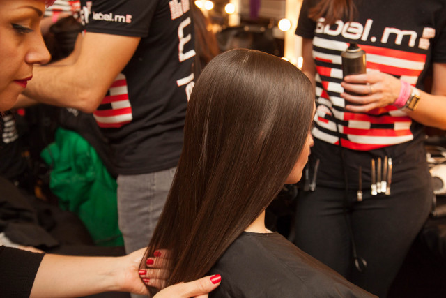 Create a centre parting and blow dry straight using a label.m Tourmaline Dryer and the NEW label.m 30mm Boar Bristle Round Brush to avoid root lift